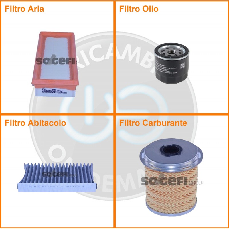 ComposizioneFiltro abitacolo ai carboni attivi, Filtro aria, Filtro gasolio, Filtro olio