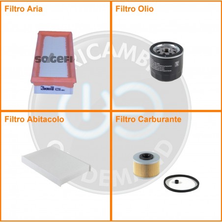 ComposizioneFiltro gasolio, Filtro olio, Filtro abitacolo, Filtro aria