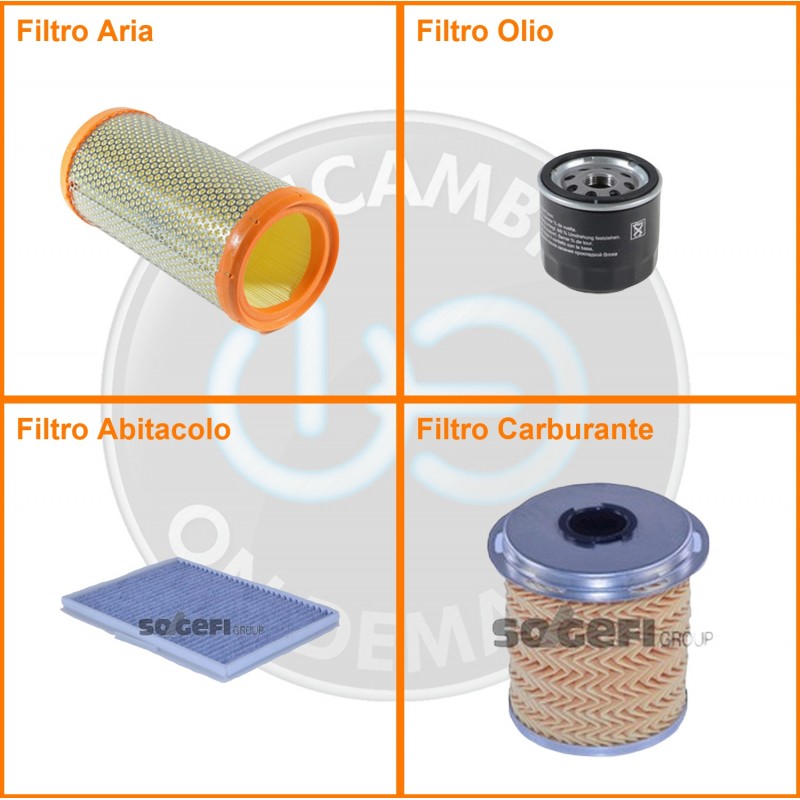 ComposizioneFiltro abitacolo ai carboni attivi, Filtro aria, Filtro gasolio, Filtro olio