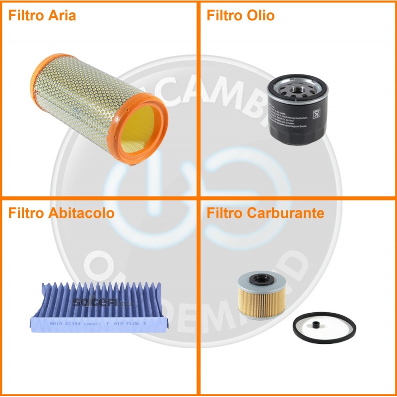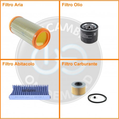 ComposizioneFiltro abitacolo ai carboni attivi, Filtro aria, Filtro gasolio, Filtro olio