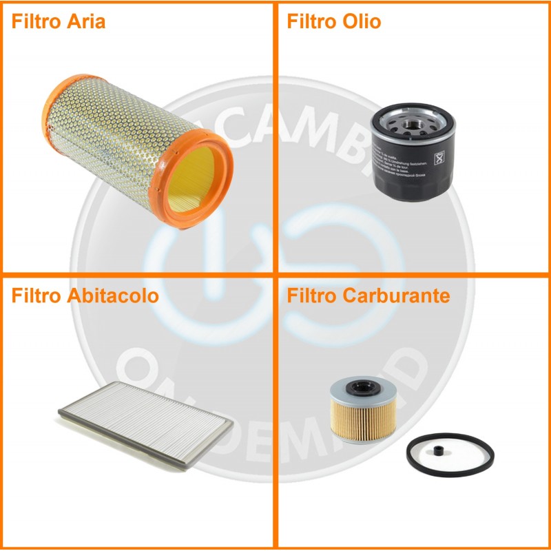 ComposizioneFiltro gasolio, Filtro olio, Filtro abitacolo, Filtro aria