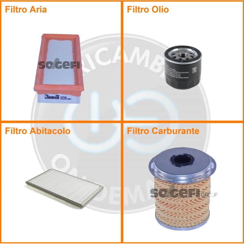 ComposizioneFiltro gasolio, Filtro olio, Filtro abitacolo, Filtro aria