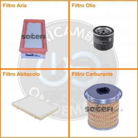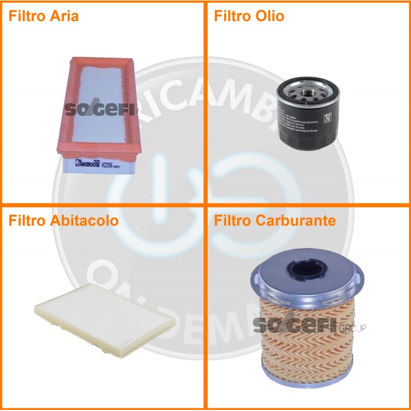 ComposizioneFiltro gasolio, Filtro olio, Filtro abitacolo, Filtro aria
