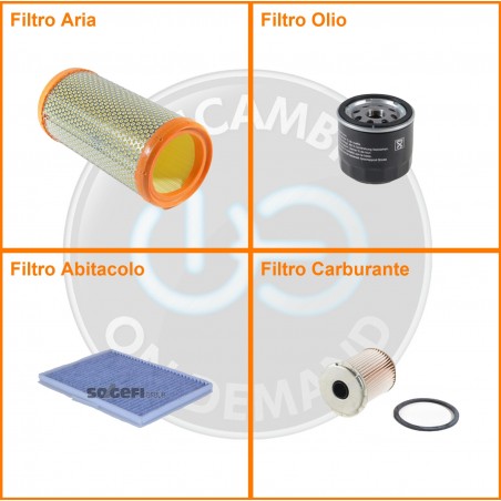 ComposizioneFiltro gasolio, Filtro olio, Filtro abitacolo ai carboni attivi, Filtro aria