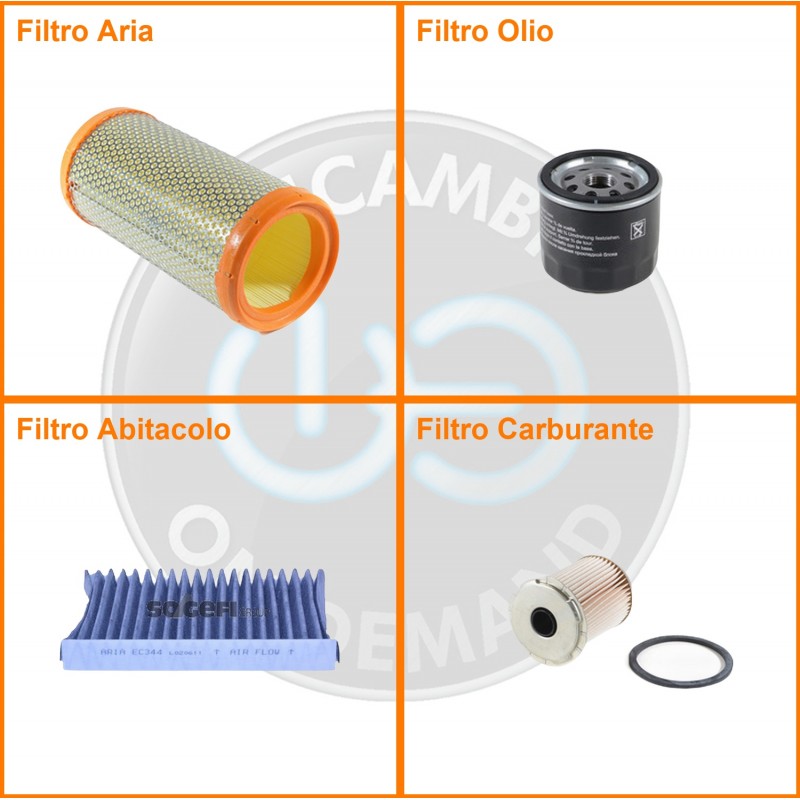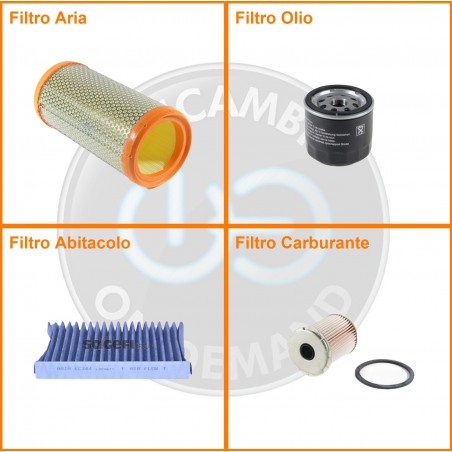 ComposizioneFiltro abitacolo ai carboni attivi, Filtro aria, Filtro gasolio, Filtro olio
