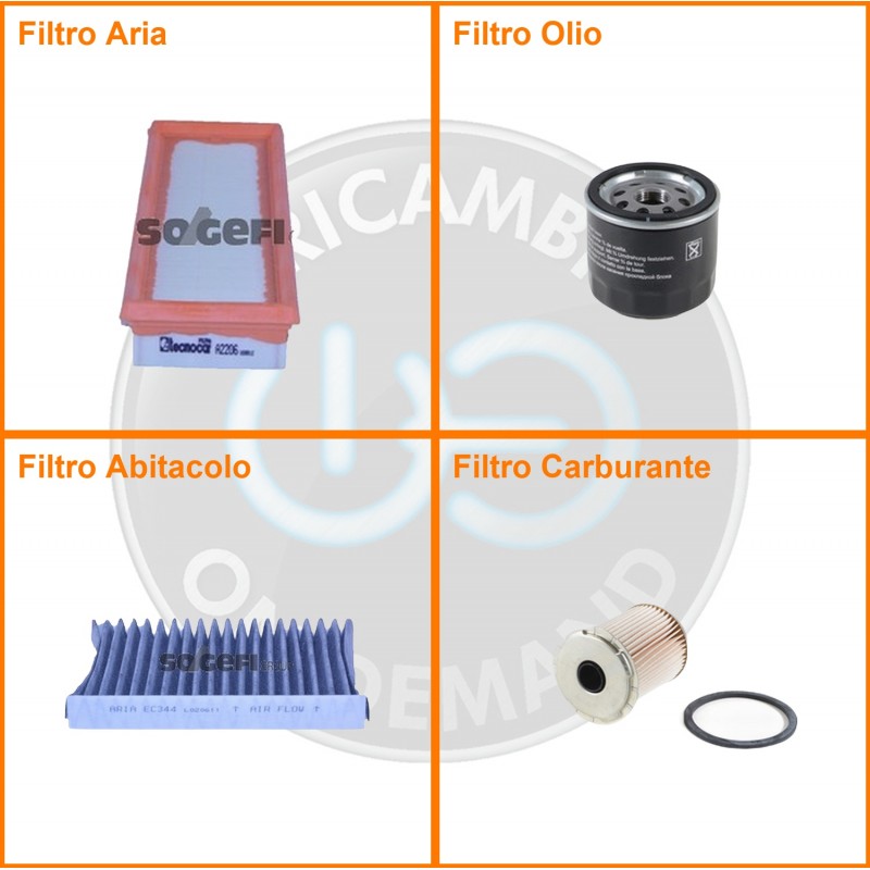 ComposizioneFiltro gasolio, Filtro olio, Filtro abitacolo ai carboni attivi, Filtro aria