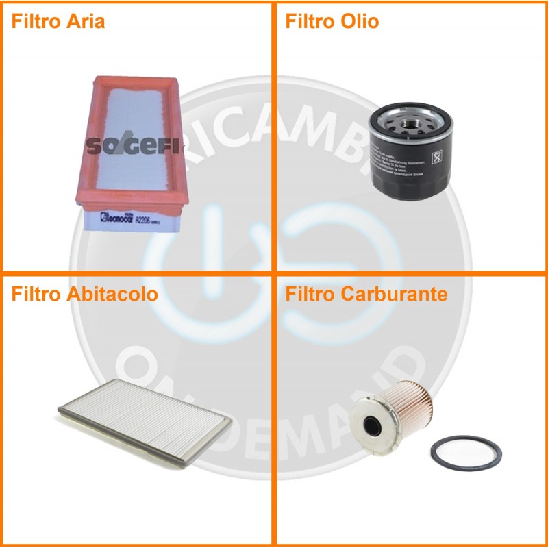 ComposizioneFiltro abitacolo, Filtro aria, Filtro gasolio, Filtro olio