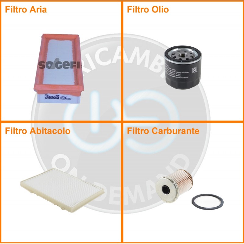 ComposizioneFiltro abitacolo, Filtro aria, Filtro gasolio, Filtro olio