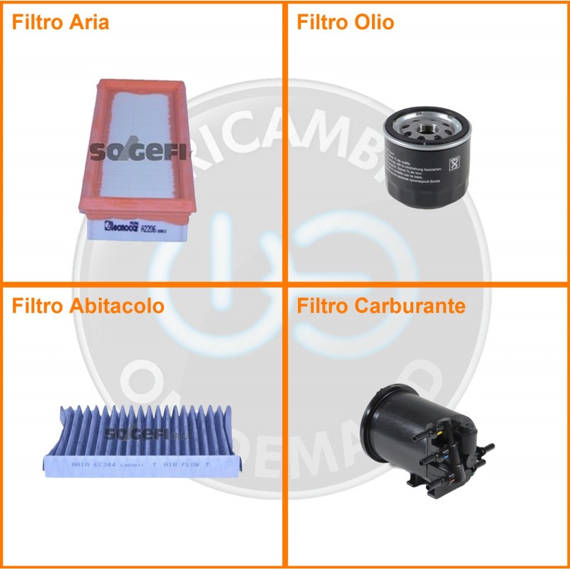 ComposizioneFiltro gasolio, Filtro olio, Filtro abitacolo ai carboni attivi, Filtro aria