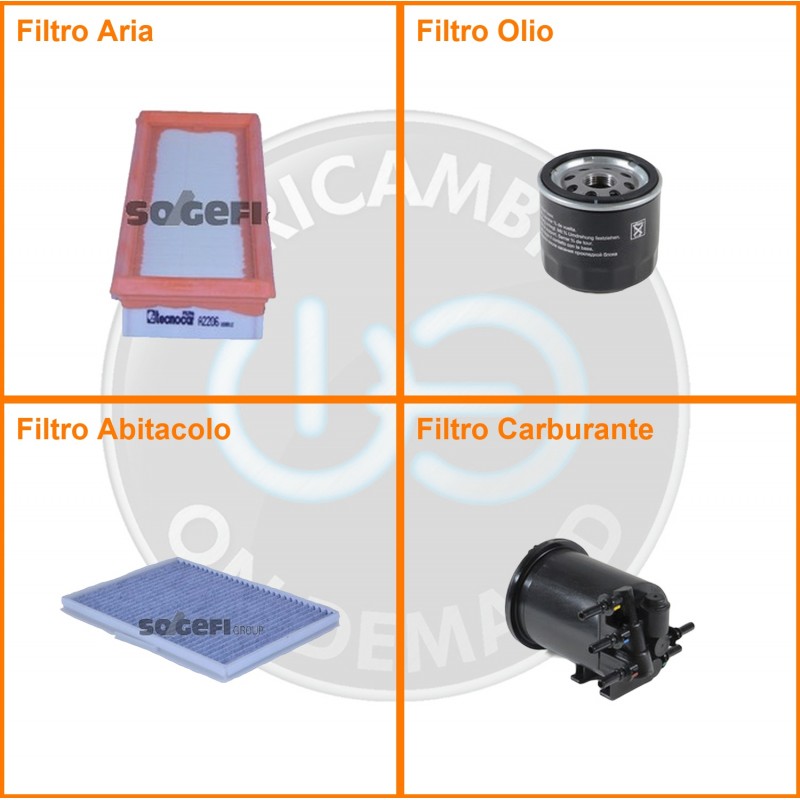 ComposizioneFiltro gasolio, Filtro olio, Filtro abitacolo ai carboni attivi, Filtro aria