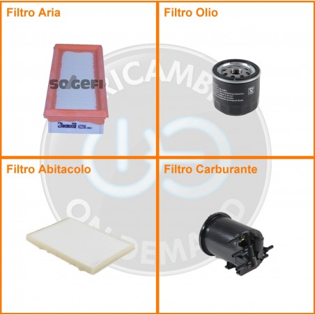 ComposizioneFiltro gasolio, Filtro olio, Filtro abitacolo, Filtro aria
