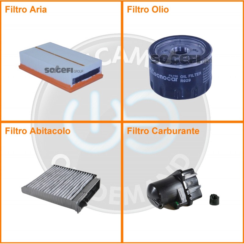 ComposizioneFiltro gasolio, Filtro olio, Filtro abitacolo ai carboni attivi, Filtro aria