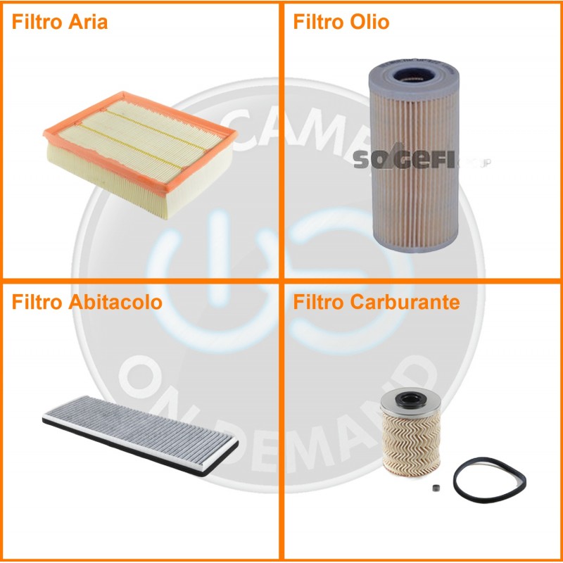 ComposizioneFiltro abitacolo ai carboni attivi, Filtro aria, Filtro gasolio, Filtro olio