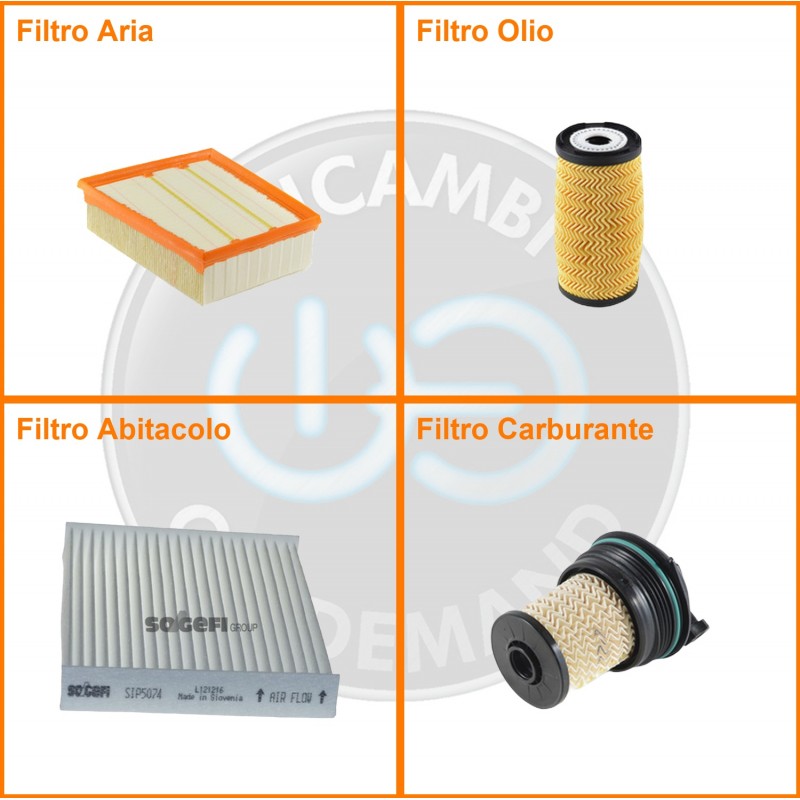 ComposizioneFiltro gasolio, Filtro olio, Filtro abitacolo, Filtro aria
