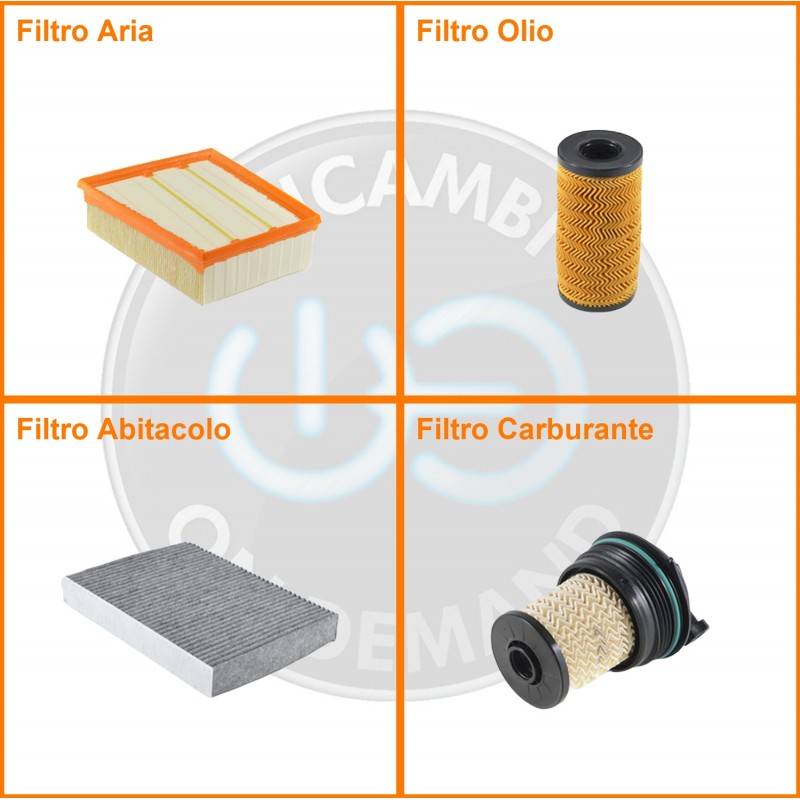 ComposizioneFiltro gasolio, Filtro olio, Filtro abitacolo ai carboni attivi, Filtro aria