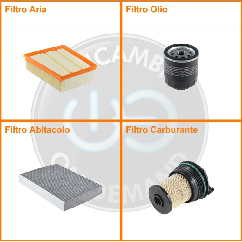ComposizioneFiltro gasolio, Filtro olio, Filtro abitacolo ai carboni attivi, Filtro aria
