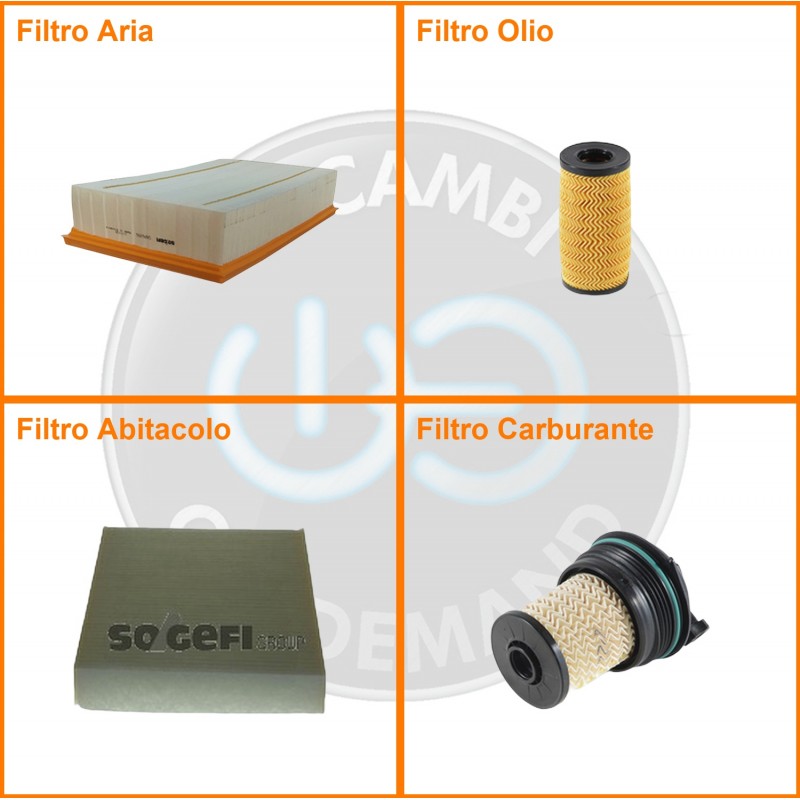 ComposizioneFiltro gasolio, Filtro olio, Filtro abitacolo, Filtro aria