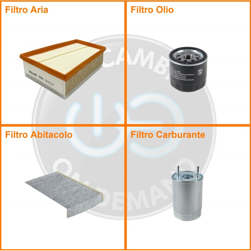 ComposizioneFiltro gasolio, Filtro olio, Filtro abitacolo ai carboni attivi, Filtro aria