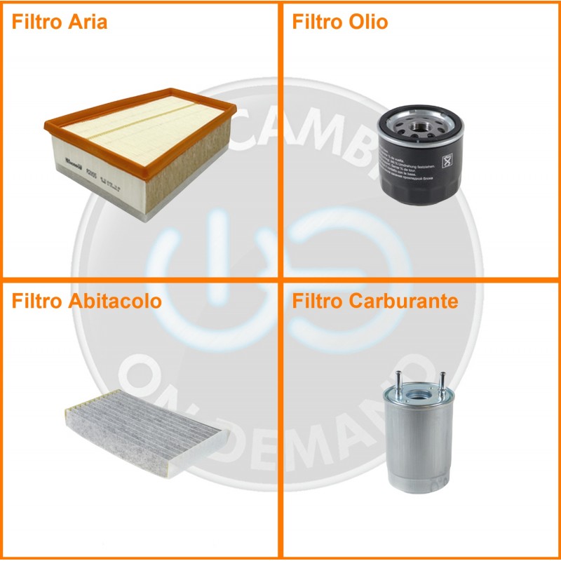 ComposizioneFiltro gasolio, Filtro olio, Filtro abitacolo ai carboni attivi, Filtro aria