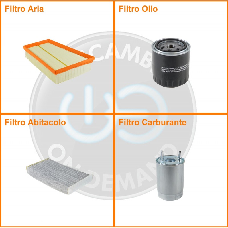ComposizioneFiltro gasolio, Filtro olio, Filtro abitacolo ai carboni attivi, Filtro aria