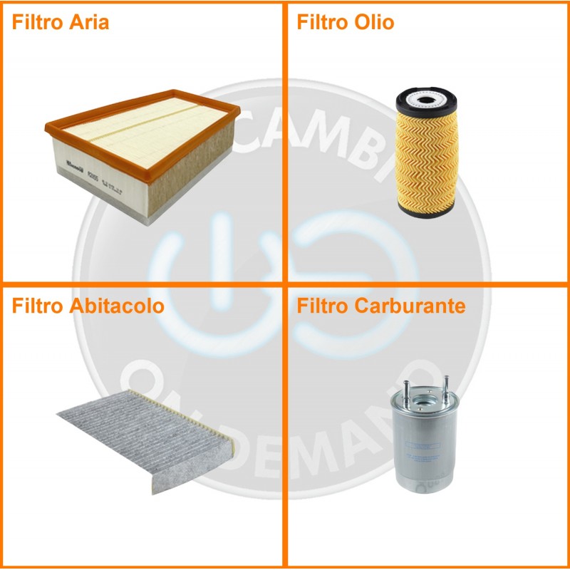 ComposizioneFiltro aria, Filtro gasolio, Filtro olio, Filtro abitacolo ai carboni attivi