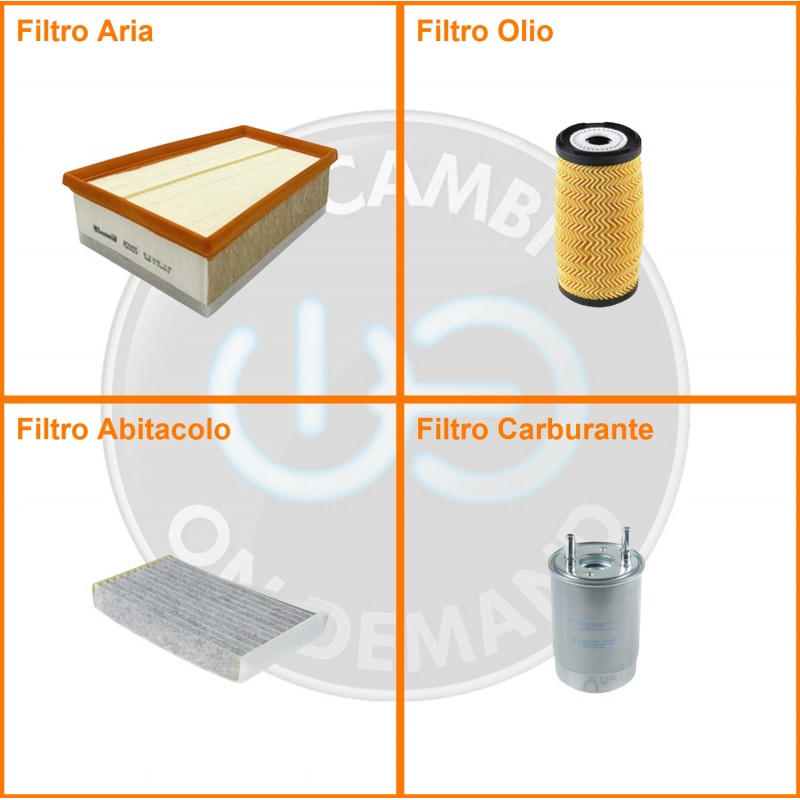 ComposizioneFiltro gasolio, Filtro olio, Filtro abitacolo ai carboni attivi, Filtro aria
