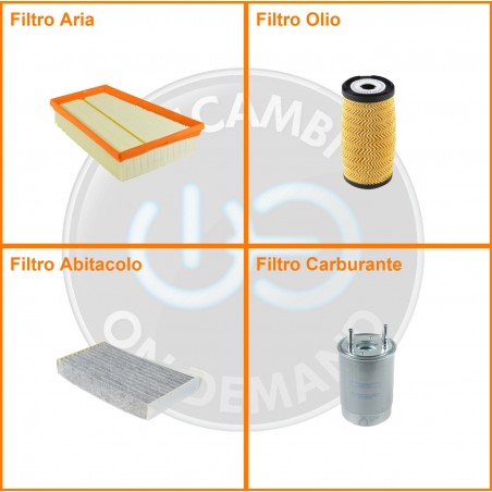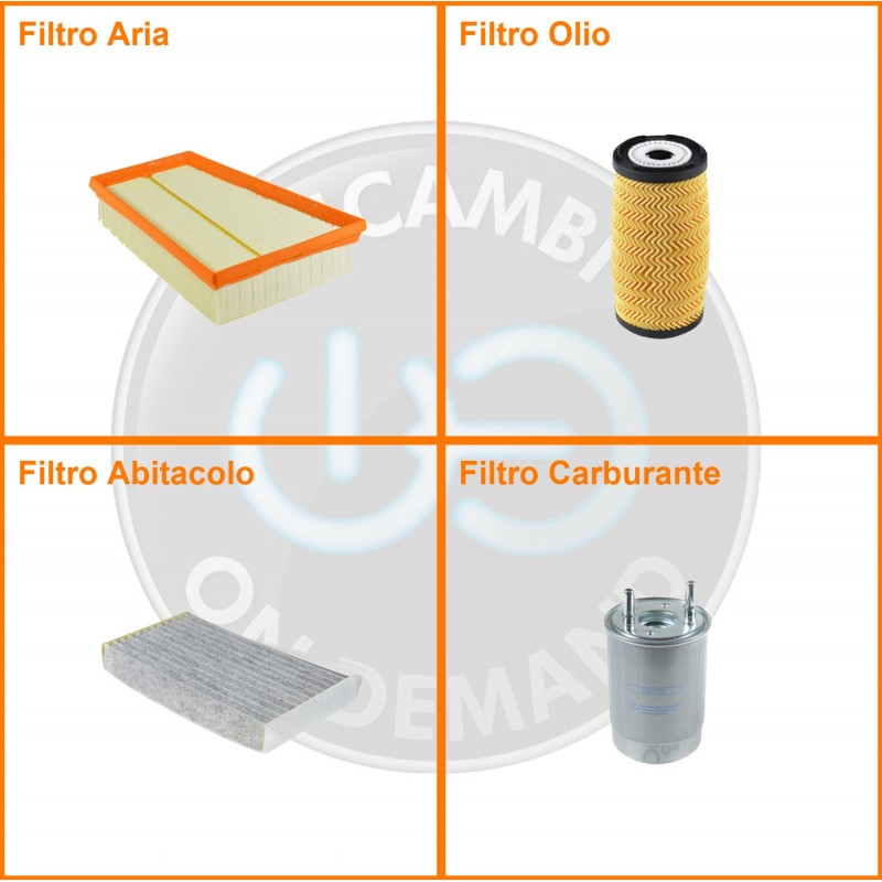 ComposizioneFiltro gasolio, Filtro olio, Filtro abitacolo ai carboni attivi, Filtro aria