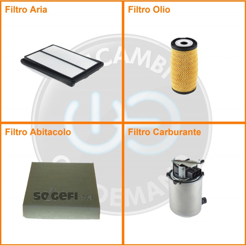 ComposizioneFiltro abitacolo, Filtro aria, Filtro gasolio, Filtro olio