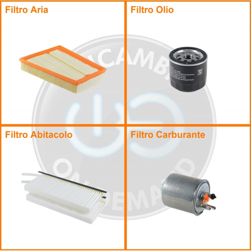 ComposizioneFiltro abitacolo, Filtro aria, Filtro gasolio, Filtro olio