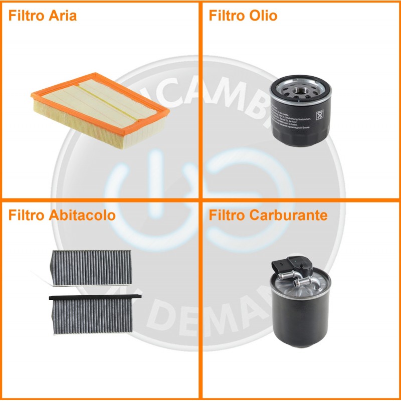ComposizioneFiltro abitacolo ai carboni attivi, Filtro aria, Filtro gasolio, Filtro olio