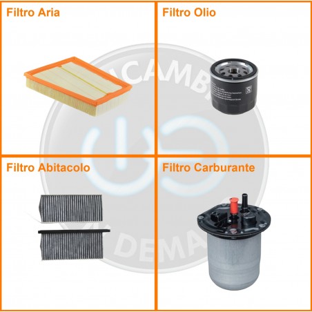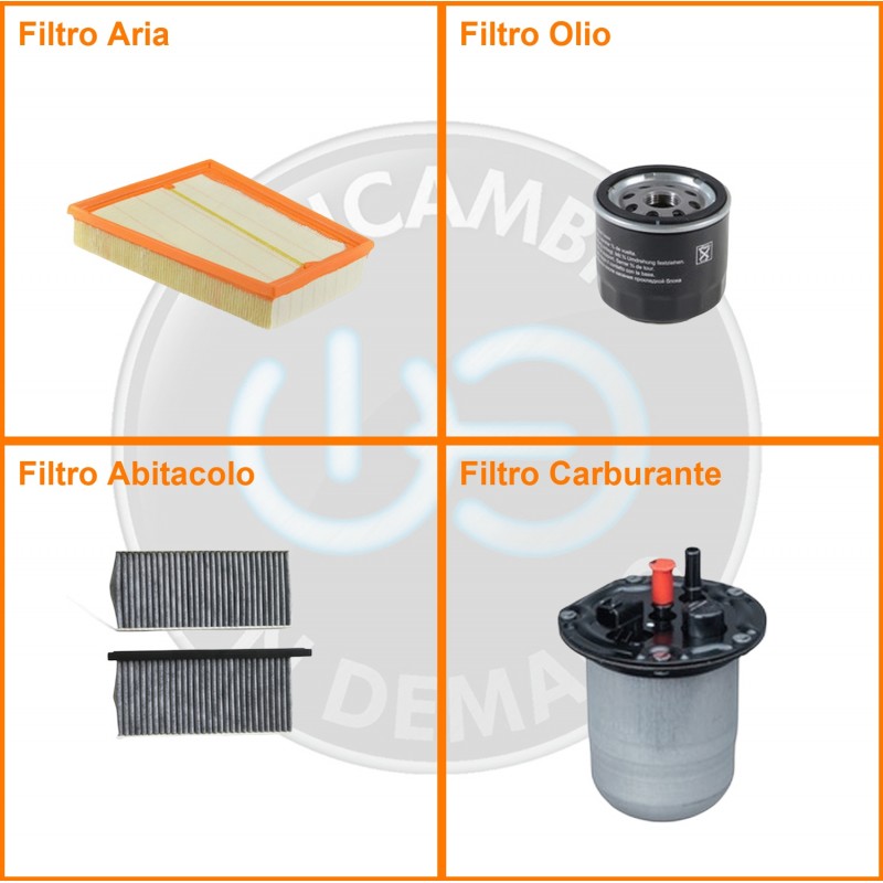 ComposizioneFiltro abitacolo ai carboni attivi, Filtro aria, Filtro gasolio, Filtro olio