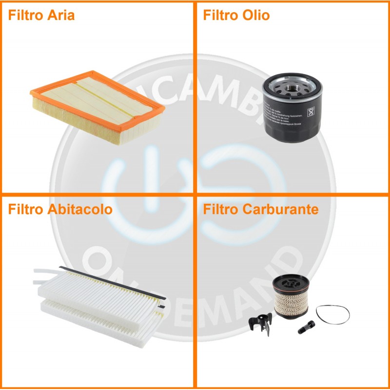 ComposizioneFiltro abitacolo, Filtro aria, Filtro gasolio, Filtro olio