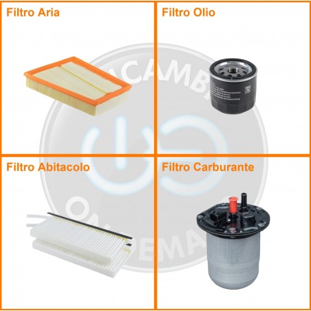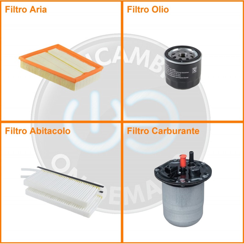 ComposizioneFiltro gasolio, Filtro olio, Filtro abitacolo, Filtro aria
