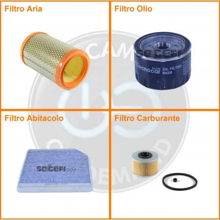 ComposizioneFiltro gasolio, Filtro olio, Filtro abitacolo ai carboni attivi, Filtro aria