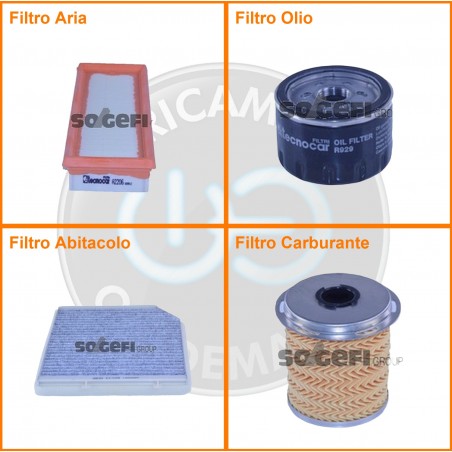 ComposizioneFiltro aria, Filtro gasolio, Filtro olio, Filtro abitacolo ai carboni attivi