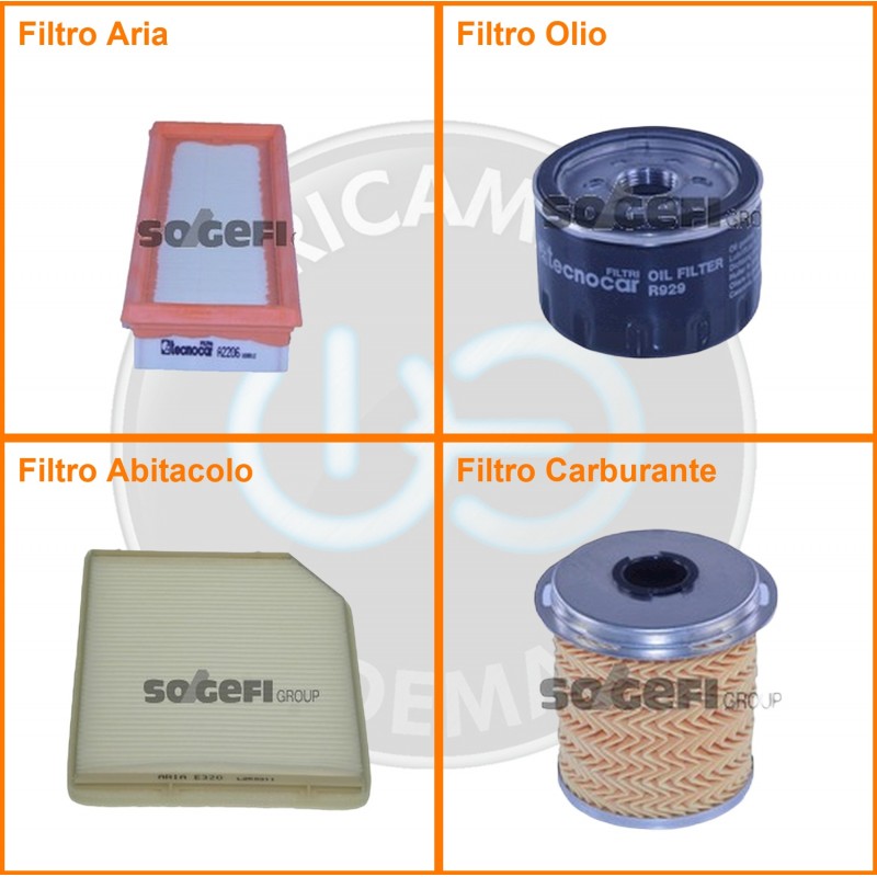 ComposizioneFiltro gasolio, Filtro olio, Filtro abitacolo, Filtro aria