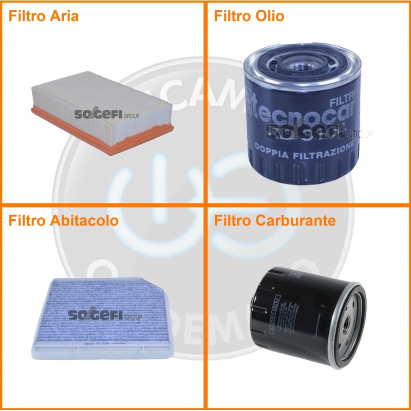 ComposizioneFiltro aria, Filtro gasolio, Filtro olio, Filtro abitacolo ai carboni attivi