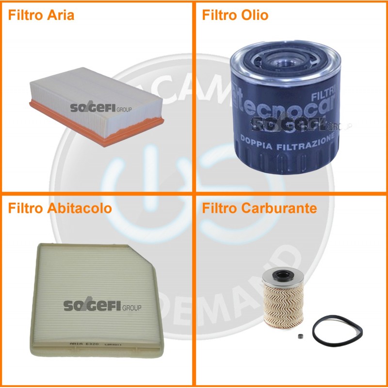 ComposizioneFiltro gasolio, Filtro olio, Filtro abitacolo, Filtro aria