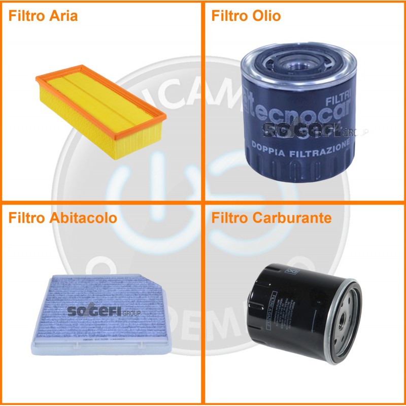 ComposizioneFiltro gasolio, Filtro olio, Filtro abitacolo ai carboni attivi, Filtro aria