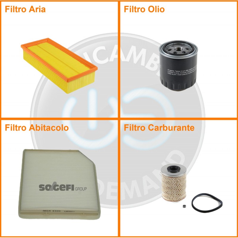 ComposizioneFiltro abitacolo, Filtro aria, Filtro gasolio, Filtro olio