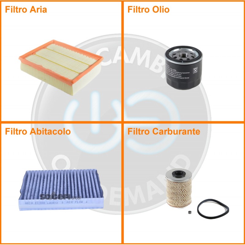 ComposizioneFiltro abitacolo ai carboni attivi, Filtro aria, Filtro gasolio, Filtro olio