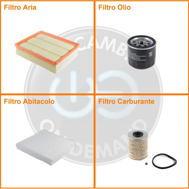 ComposizioneFiltro abitacolo, Filtro aria, Filtro gasolio, Filtro olio