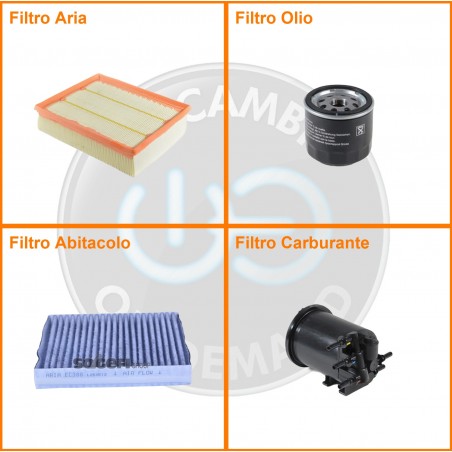 ComposizioneFiltro abitacolo ai carboni attivi, Filtro aria, Filtro gasolio, Filtro olio