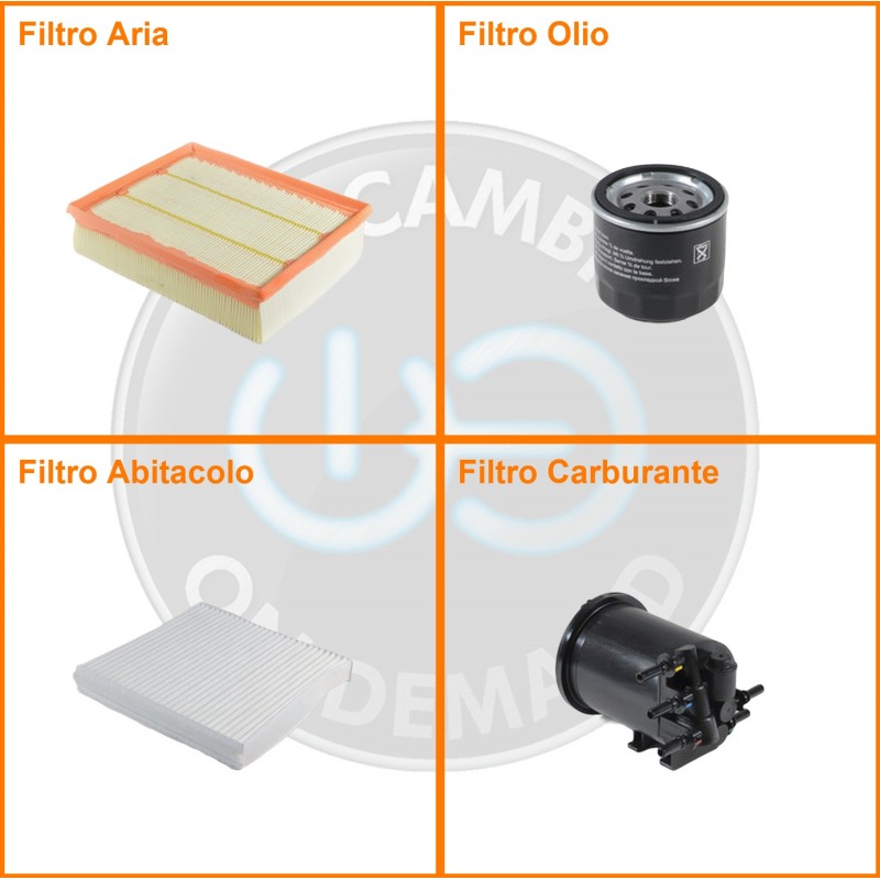 ComposizioneFiltro abitacolo, Filtro aria, Filtro gasolio, Filtro olio