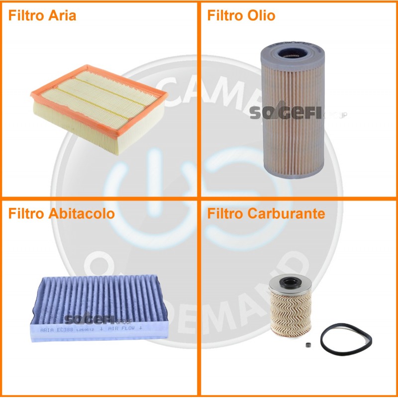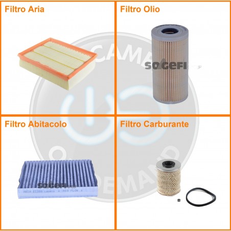 ComposizioneFiltro abitacolo ai carboni attivi, Filtro aria, Filtro gasolio, Filtro olio