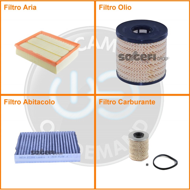 ComposizioneFiltro gasolio, Filtro olio, Filtro abitacolo ai carboni attivi, Filtro aria