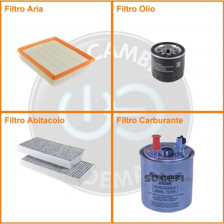 ComposizioneFiltro abitacolo ai carboni attivi, Filtro aria, Filtro gasolio, Filtro olio
