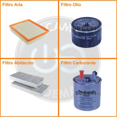 ComposizioneFiltro abitacolo ai carboni attivi, Filtro aria, Filtro gasolio, Filtro olio