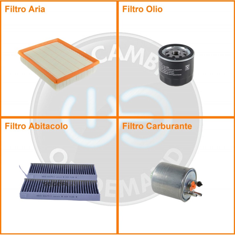 ComposizioneFiltro gasolio, Filtro olio, Filtro abitacolo ai carboni attivi, Filtro aria