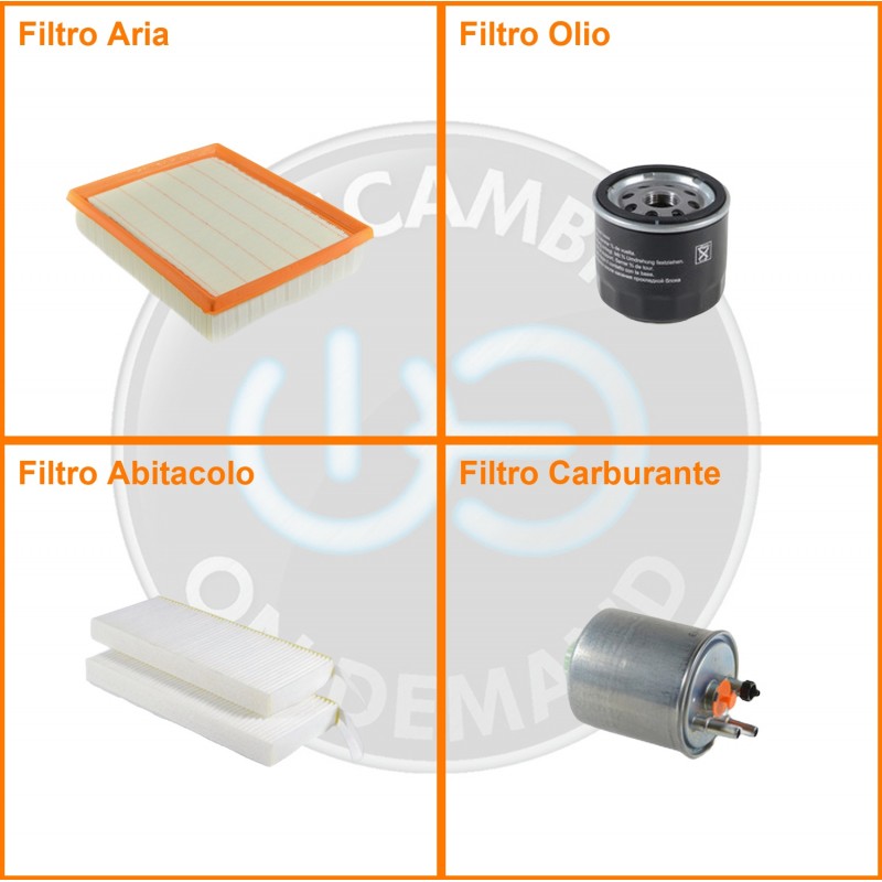 ComposizioneFiltro gasolio, Filtro olio, Filtro abitacolo, Filtro aria